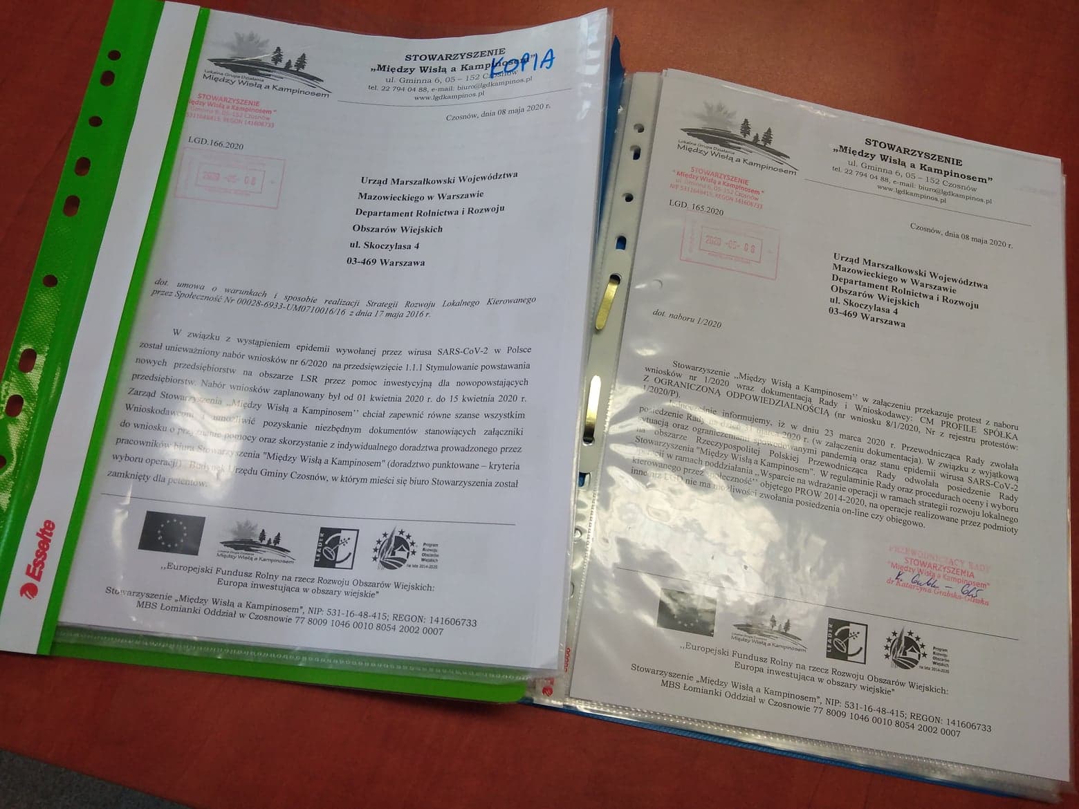 - wniosek o akceptację terminu naboru nr 7/2020 na przedsięwzięcie 1.1.1 Stymulowanie powstawania nowych przedsiębiorstw na obszarze LSR przez pomoc inwestycyjną dla nowopowstających przedsiębiorstw;