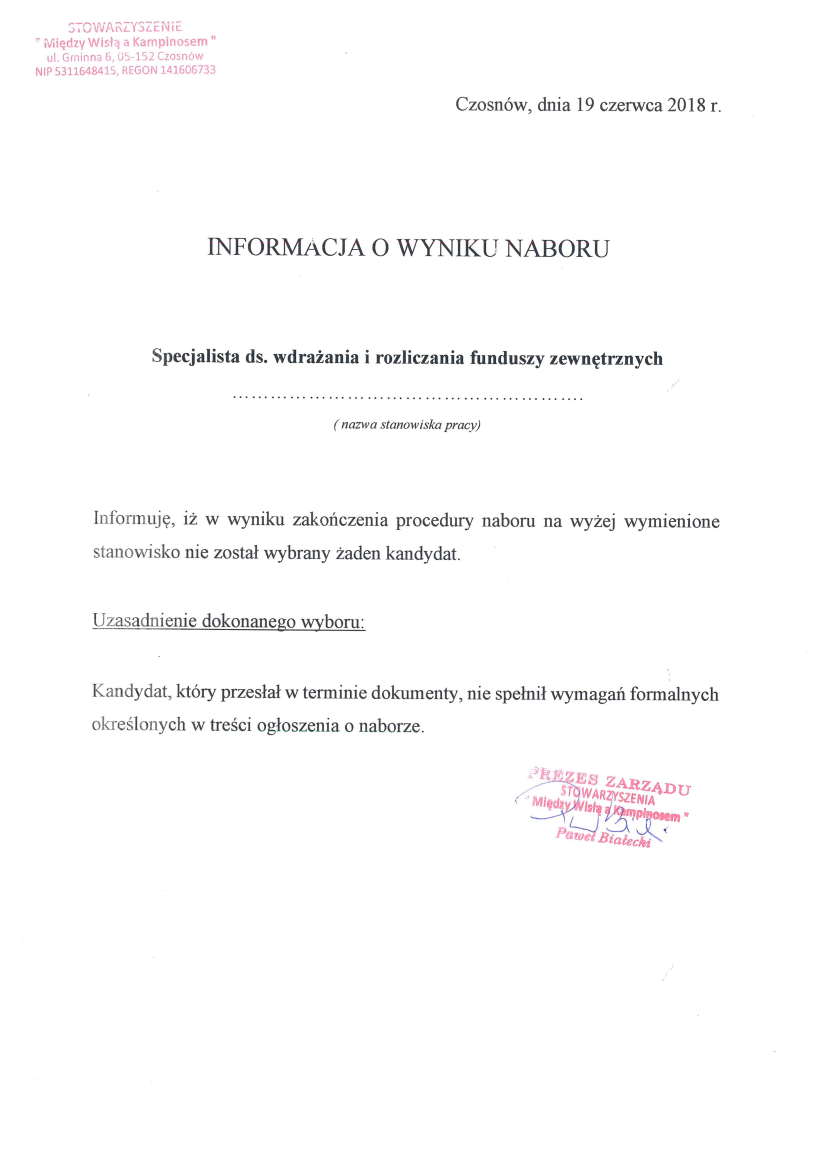 Informacja o wyniku naboru