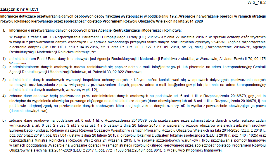 załącznikiem nr VII.C.1 Informacje dotyczące przetwarzania danych