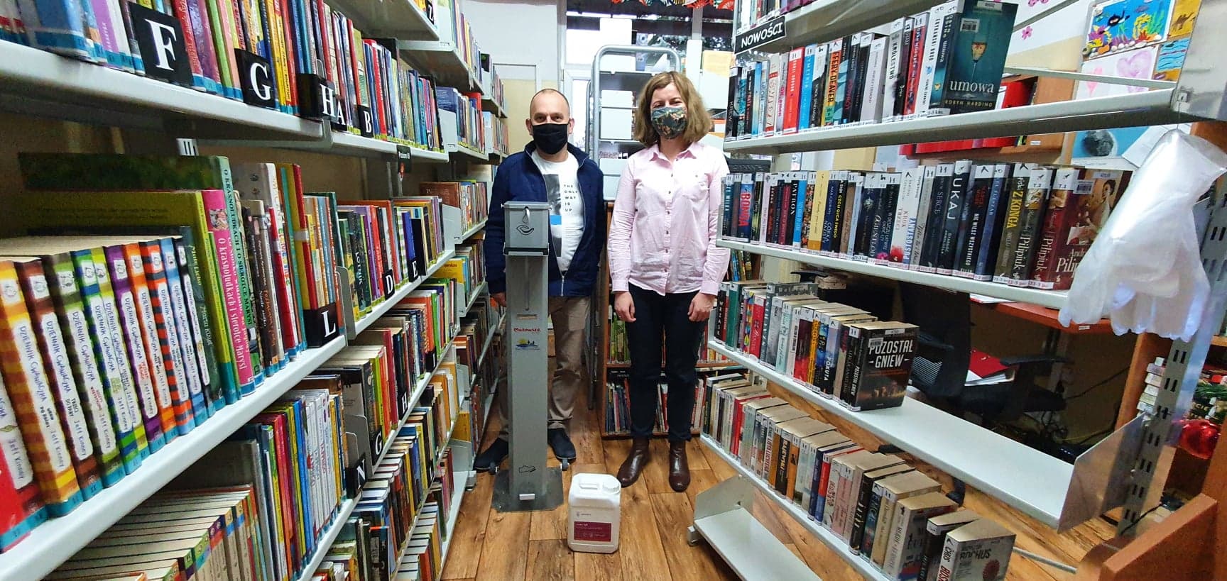 Kolejne dozowniki płynu do dezynfekcji trafiły do Biblioteki Publicznej