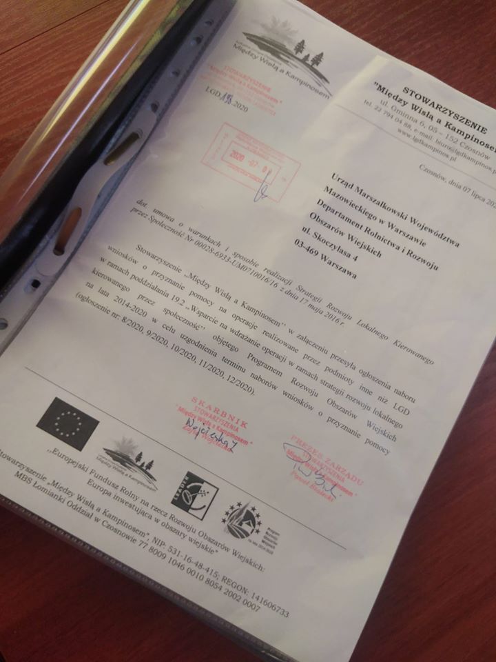 Stowarzyszenie "Między Wisłą a Kampinosem" planuje przyjmowanie wniosków od 24 sierpnia 2020 r. do 07 września 2020 r.