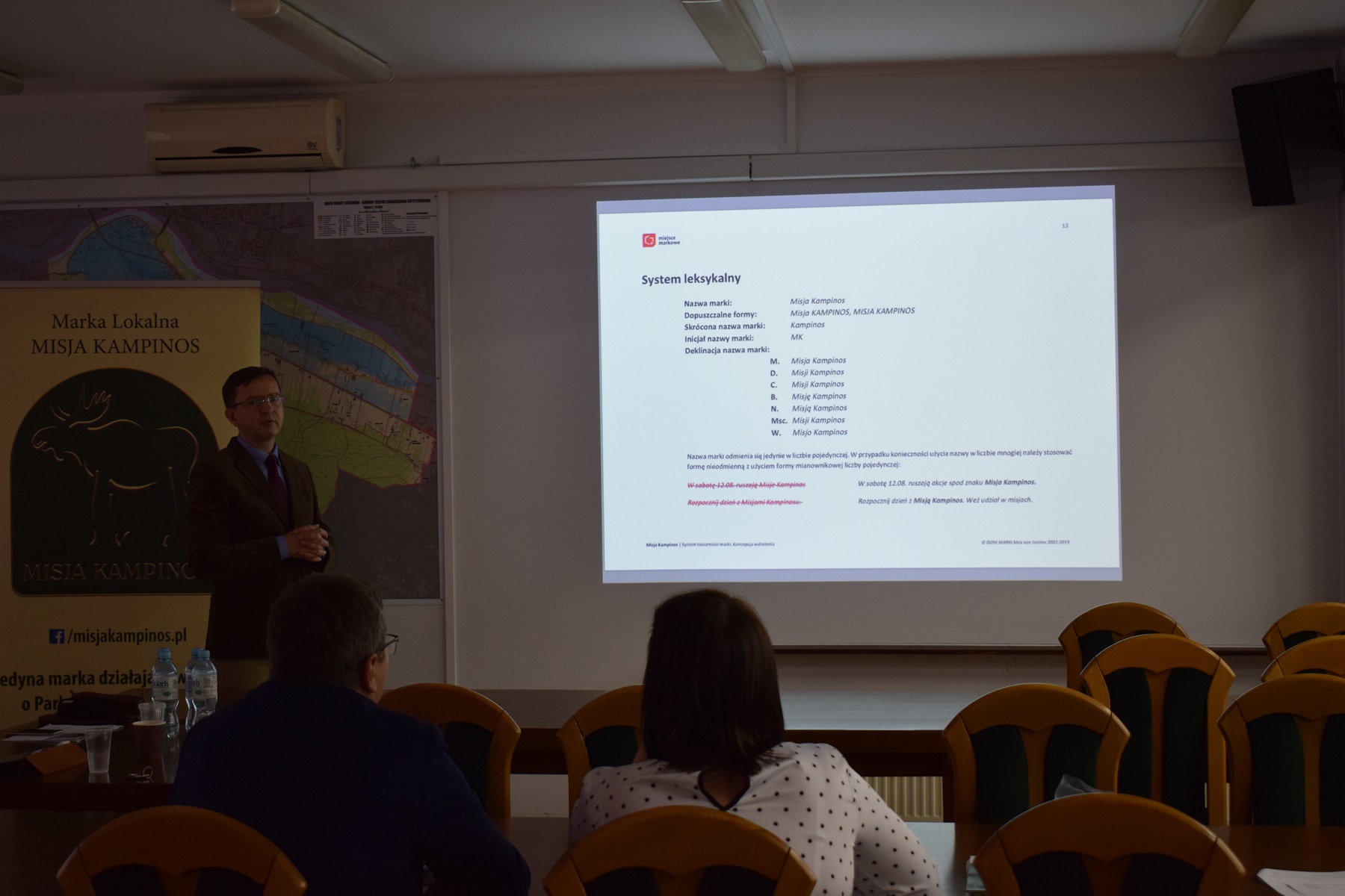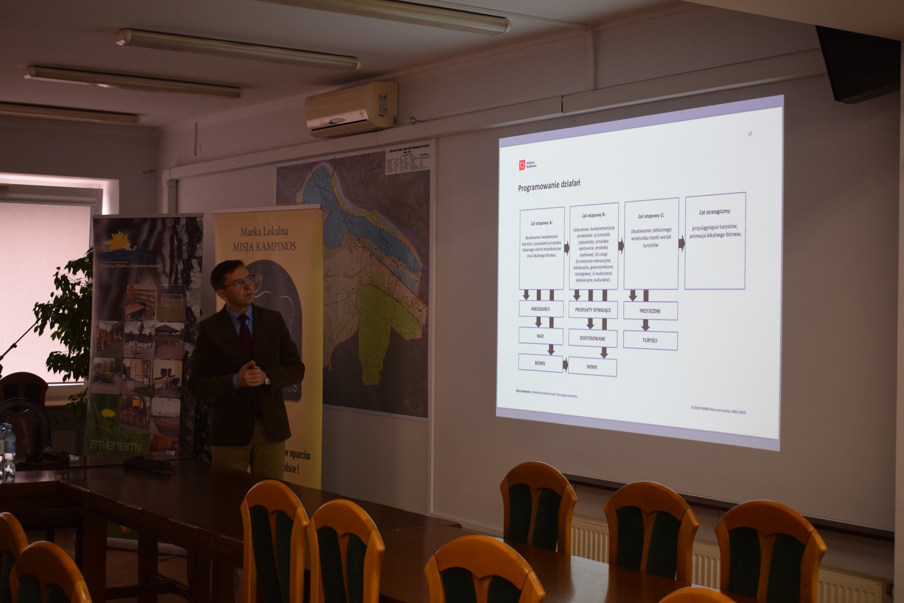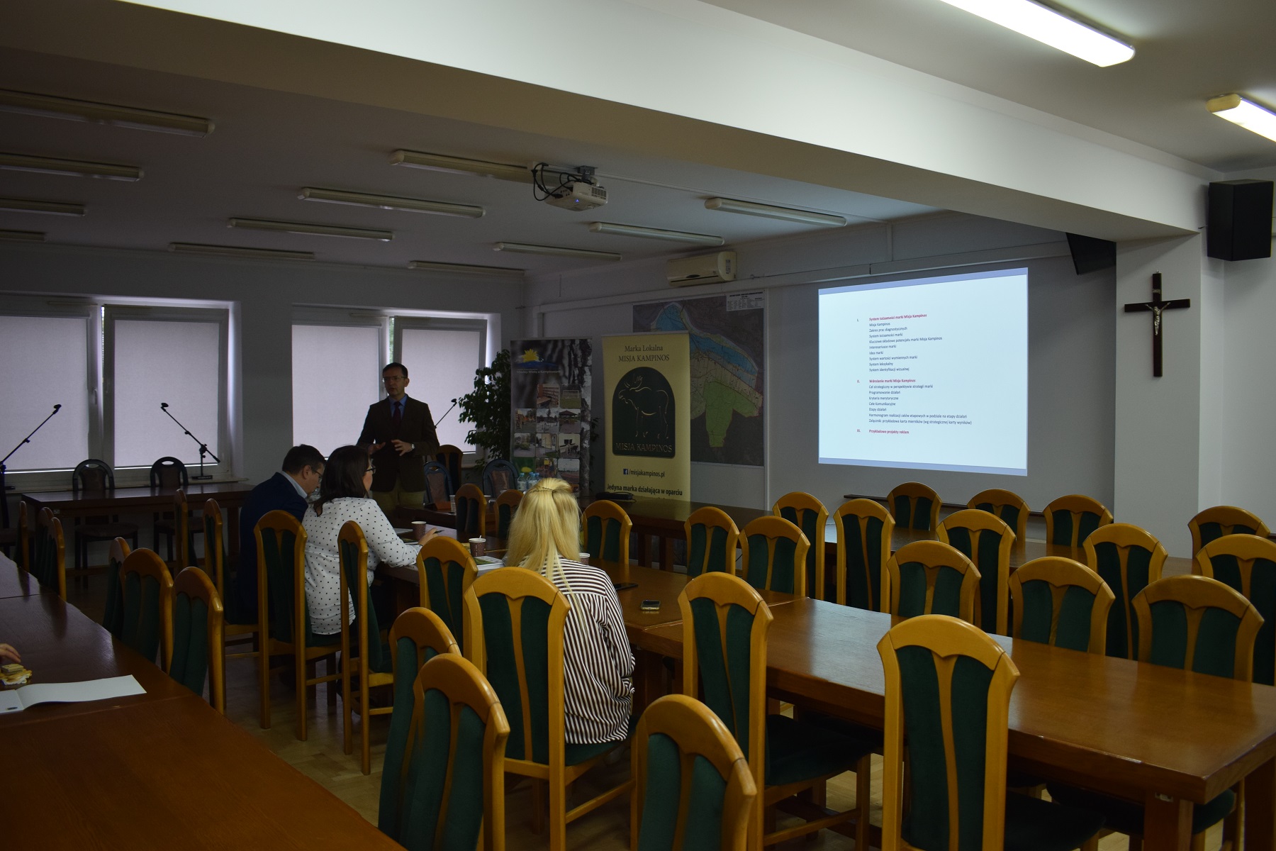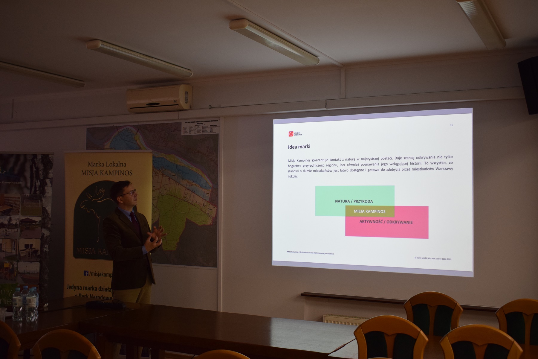 Celem spotkania było przedstawienie wypracowanej strategii promocji i rozwoju marki lokalnej Misja Kampinos oraz systemu identyfikacji wizualnej.