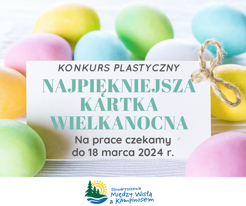 Zapraszamy serdecznie uczniów klas I - VIII z obszaru działania Stowarzyszenia "Między Wisłą a Kampinosem" do wzięcia udziału w konkursie na najpiękniejszą kartkę Wielkanocną.