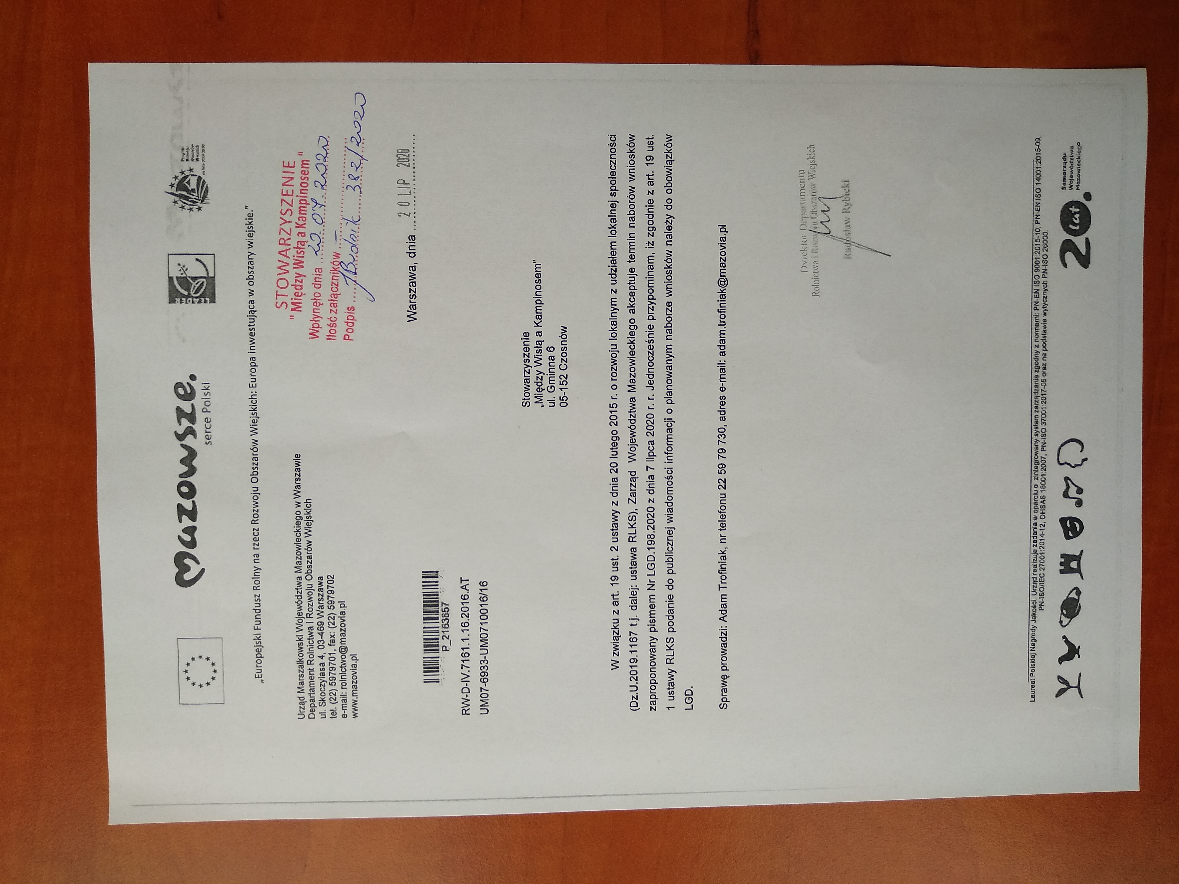 - 10/2020 w ramach przedsięwzięcia 3.1.1 Wsparcie inicjatyw społecznych mających na celu integrację społeczności lokalnej i/lub organizacji pozarządowych z obszaru LSR