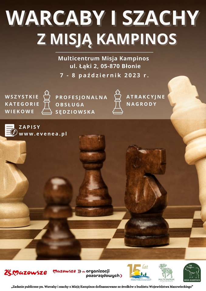 Kampinos w godzinach 10:00 - 15:00 rozegrany zostanie turniej warcabowy i szachowy. Dla