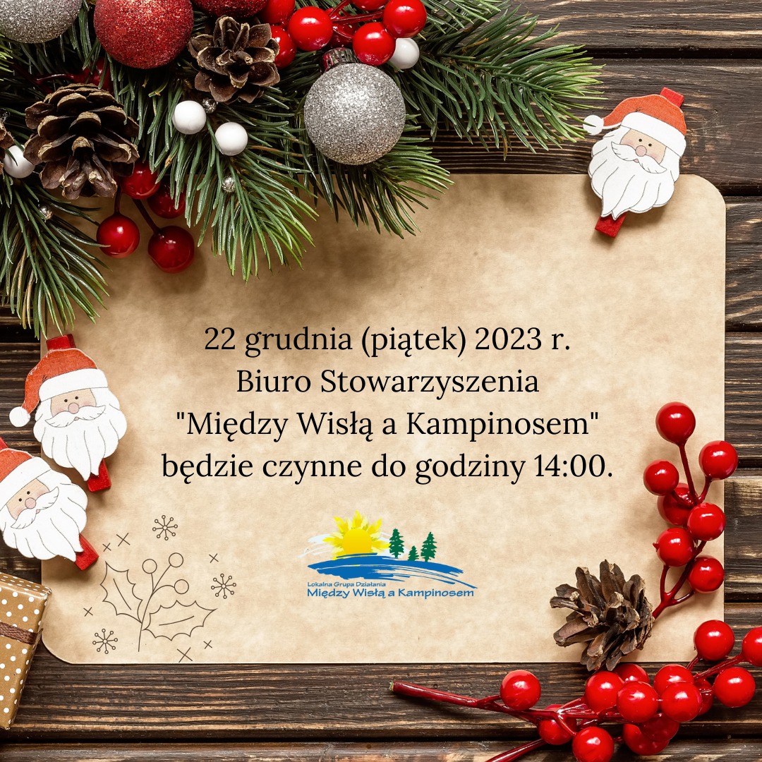 22 grudnia (piątek) nasze biuro będzie czynne do godziny 14:00.