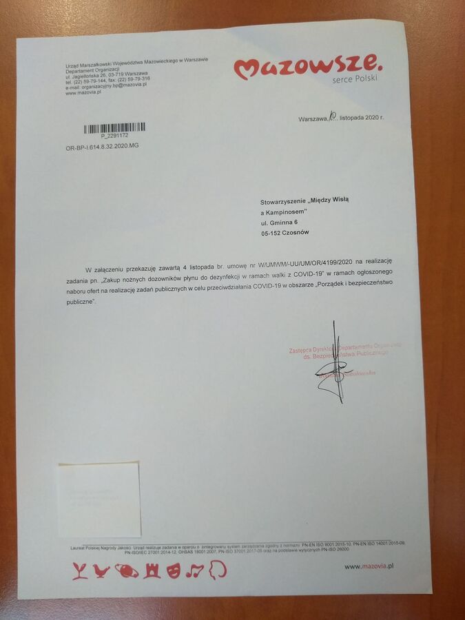 W tym miesiącu podpisaliśmy umowę z Zarządem Województwa Mazowieckiego na