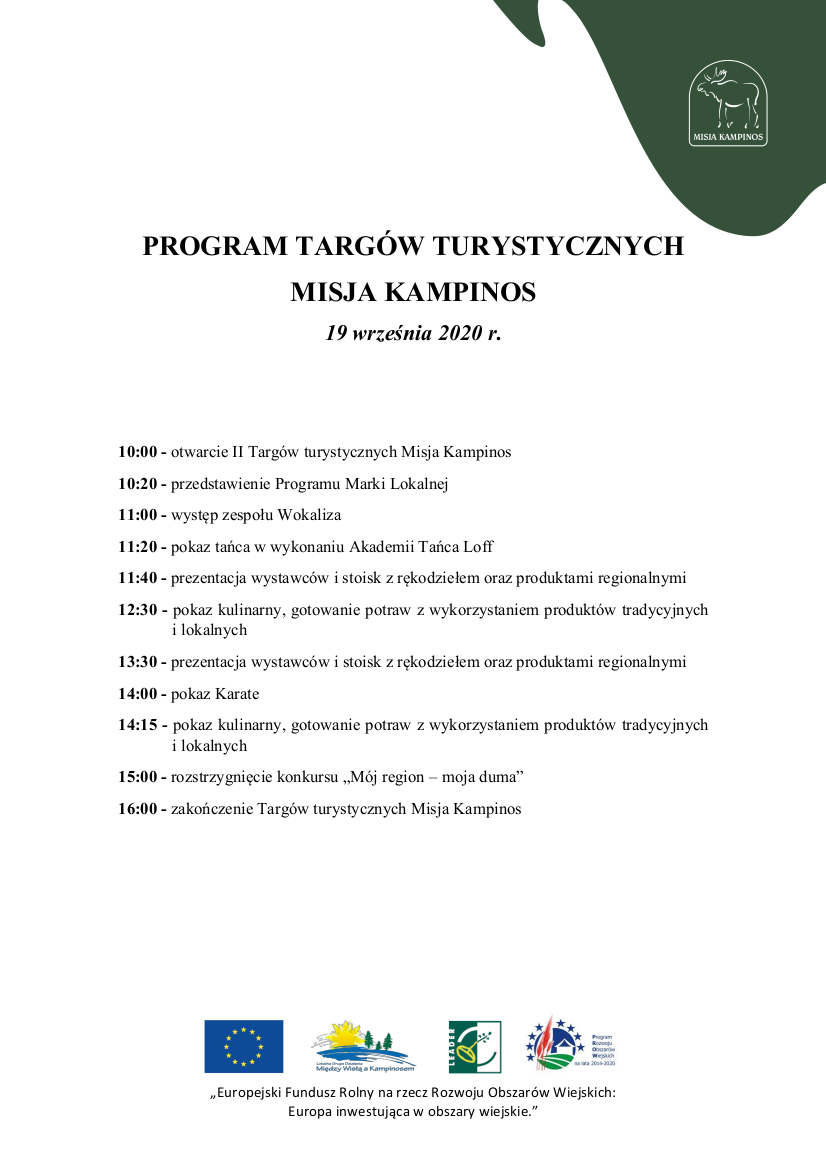 Przedstawiamy oficjalny program II Tragów turystycznych Misja Kampinos. Do zobaczenia w sobotę!