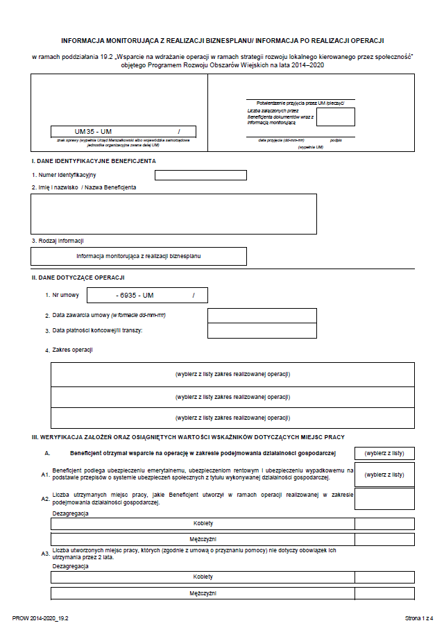 monitorującej z biznesplanu, lub informacji po realizacji