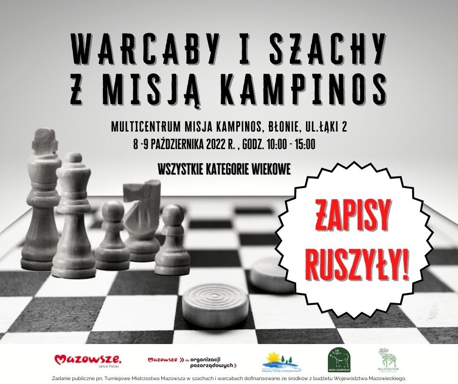 Zadanie publiczne pn. „Turniejowe Mistrzostwa Mazowsza w Szachach i Warcabach z Misją Kampinos” dofinansowane ze środków z budżetu Województwa Mazowieckiego.