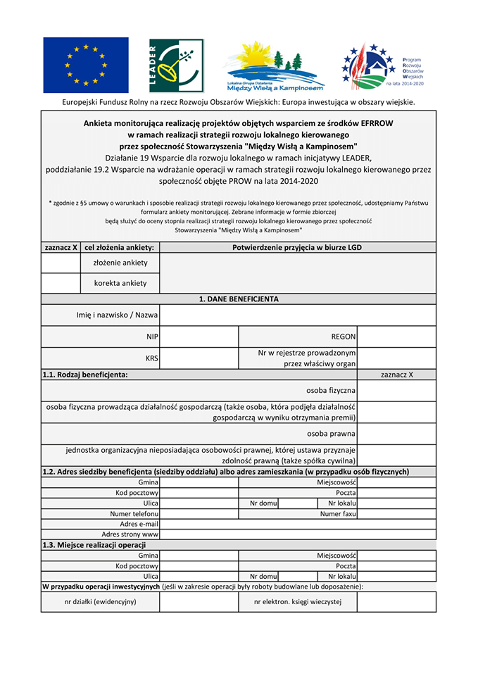 do złożenia ankiety monitorującej realizację projektów objętych wsparciem ze środków EFRROW w ramach