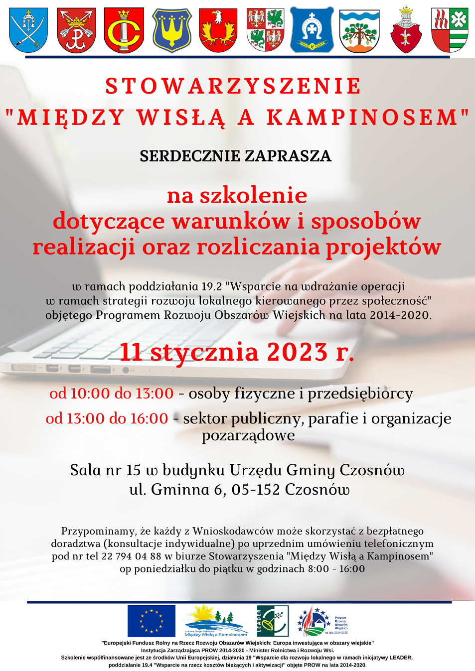 oraz rozliczania projektów, które odbędzie się 11 stycznia 2023 r. w Urzędzie Gminy w Czosnowie.