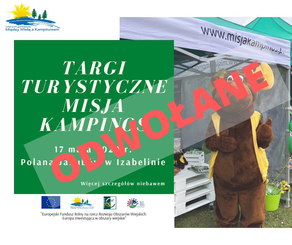 w związku z wystąpieniem epidemii wywołanej przez wirusa SARS-CoV-2 w Polsce Stowarzyszenie "Między Wisłą a Kampinosem" odwołuje Targi turystyczne Misja Kampinos.