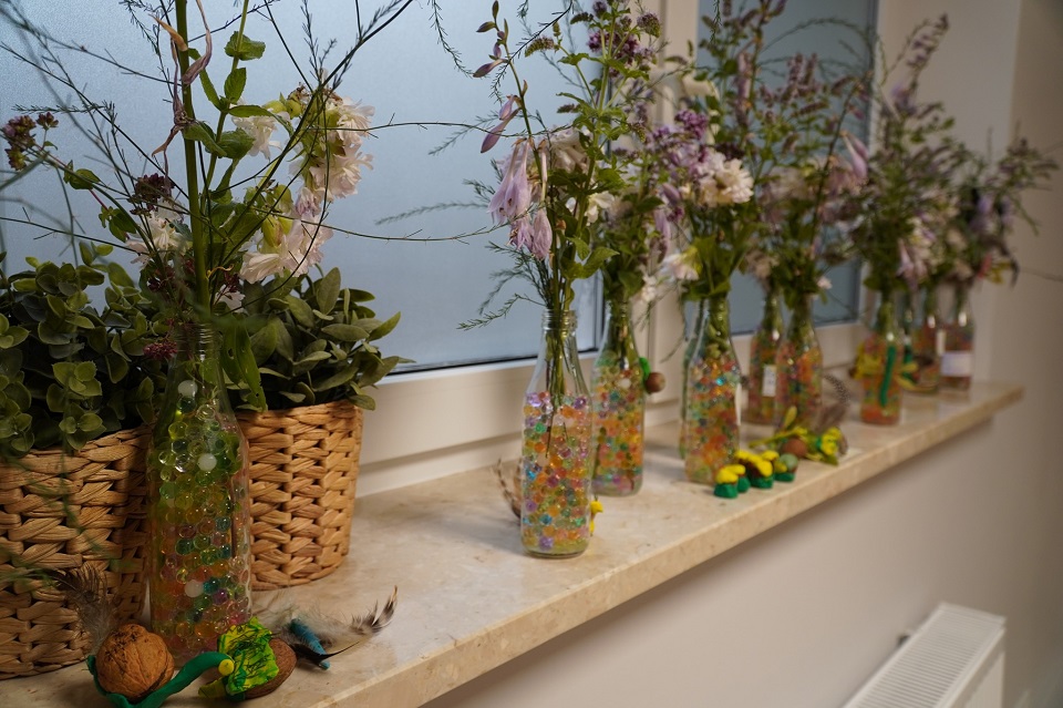 Dzieci z młodszej grupy wzięły udział w fascynującym spacerze botaniczno-przyrodniczym, gdzie mogły zgłębiać wiedzę o roślinach i ich właściwościach. Następnie przystąpiły do tworzenia pięknych dekoracji roślinno-hydrożelowych, które były prawdziwymi dziełami sztuki!