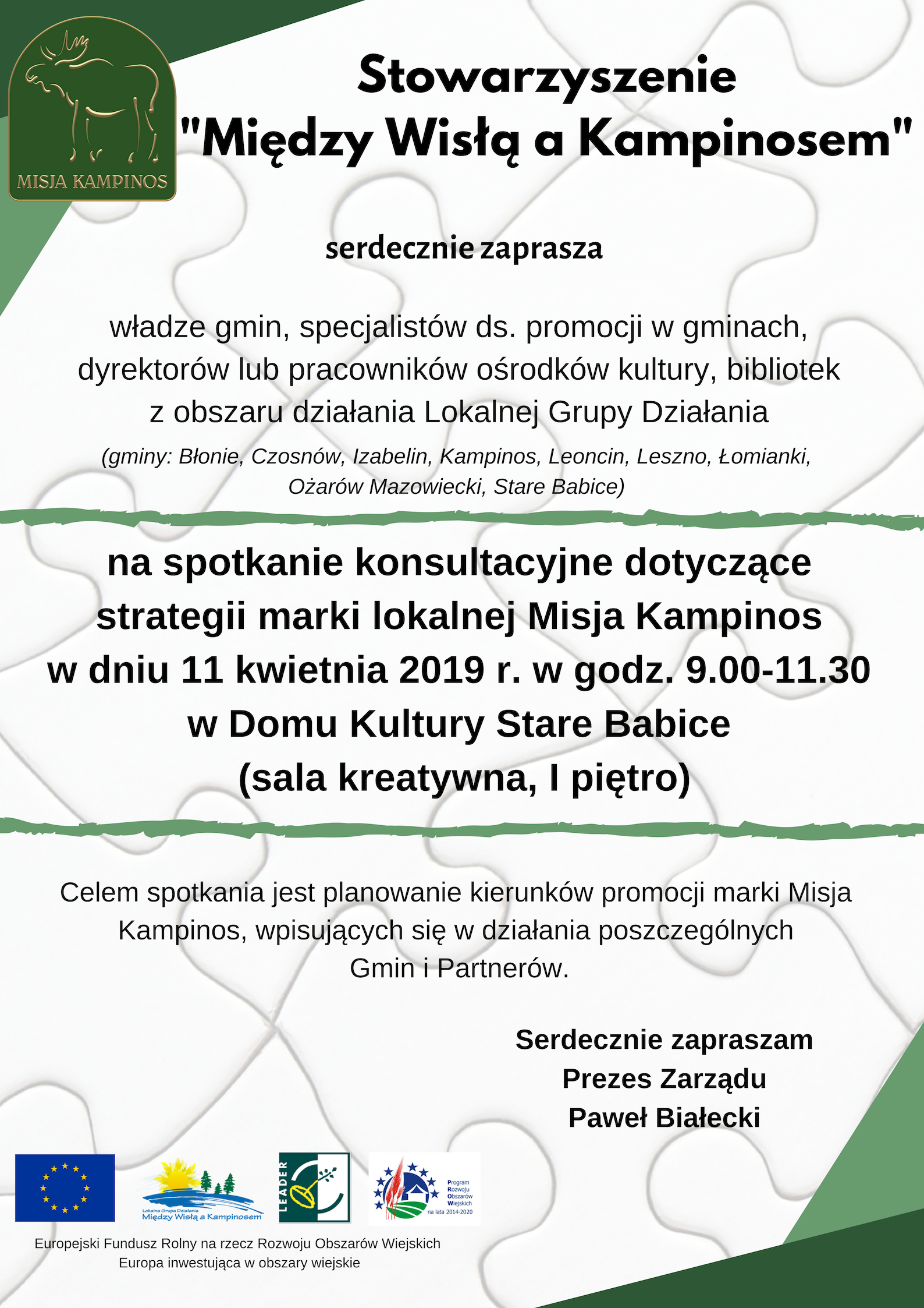 Zaproszenie na spotkanie konsultacyjne dotyczące strategii marki lokalnej Misja Kampinos