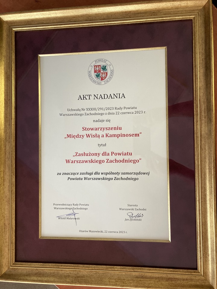 Stowarzyszenie "Między Wisłą a Kampinosem" zostało uhonorowane tytułem