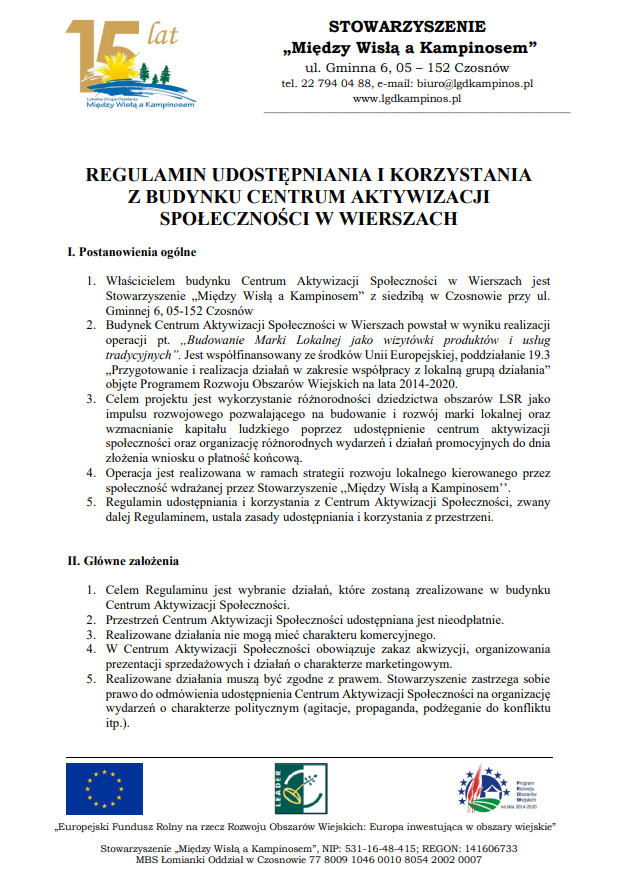 Regulamin udostępniania i korzystania z budynku Centrum Aktywizacji Społeczności w Wierszach.